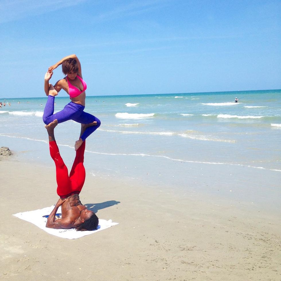 She actually found me through Instagram; she was following me and I invited my followers in Orlando to come and do a yoga class with me at the studio, and she came out and we started doing Acro[Yoga] that day and never stopped. That was actually two years ago..