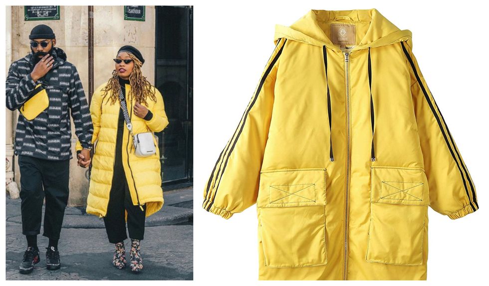 Yellow pops like gold on melanin women. Keep the color alive during fall by snagging a puffer coat. Puffer coats are reminiscent of the 90s, so get your Aaliyah on with some boyfriend jeans and a turtleneck like Soreya.