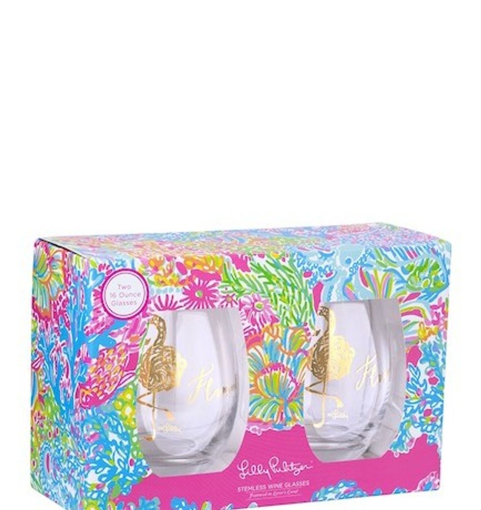 Set of Two Flamingle Stemless Wine Glasses, $35