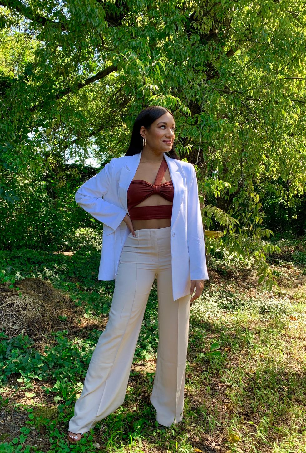 We all know monochromatic is the way to go if you want to stunt. Sage is the color of the year (especially for mental health purposes) and compliments every skin tone. While green symbolizes warmth, this particular hue is exceptionally calming and brings tranquility. As opposed to a longer set, the shorts set is more youthful and a better option in warmer climates. You can easily dress this down for a more casual vibe by pairing it with a t-shirt instead of the traditional blouse, and sneakers instead of ankle-strap heels.