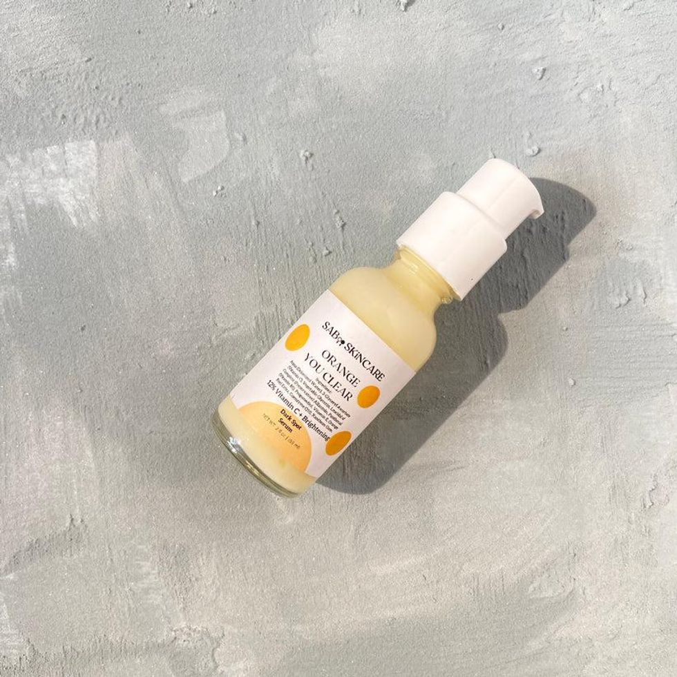 "Then, I like to go in with a vitamin C serum. That's also from my line, it's called Orange You Clear, which is like a cute little play on words. It's a gel serum, which I love. I love the way a gel cream applies."