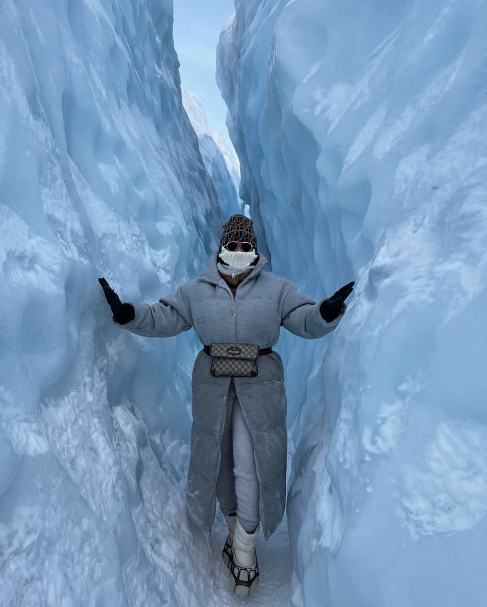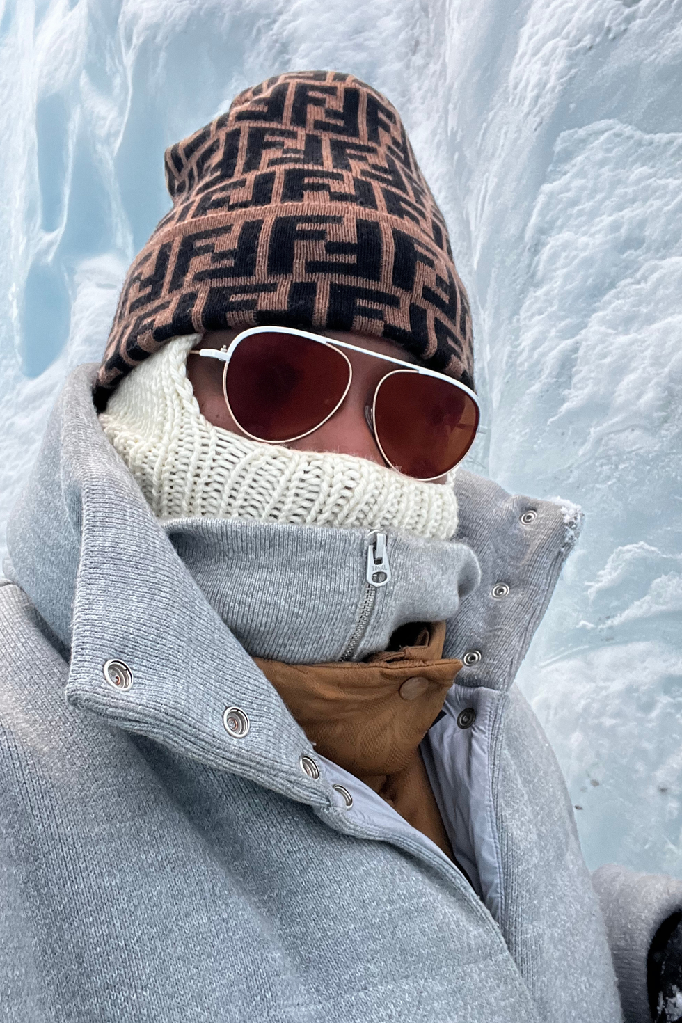 Once we got there, we were surrounded by fresh, fluffy snow, and it was COLD! In the negative cold. I was thankful, I’d over-prepared. If you even go on a glacier tour, I recommend a few things: Balaclava, heavy-weight gloves, cashmere socks, snow boots, and lots of layers.