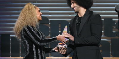 The ceremony took place last night at the Barclay Center in New York, and Beyonce did the huge honors of presenting Kaepernick with the deserving award: