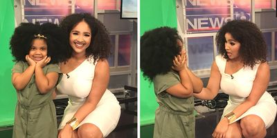 The young girl with the bouncy hair and even bouncier personality could barely contain her excitement as she not only danced and laughed her way on set, but "Mini-D" also helped Obilor co-anchor the news: