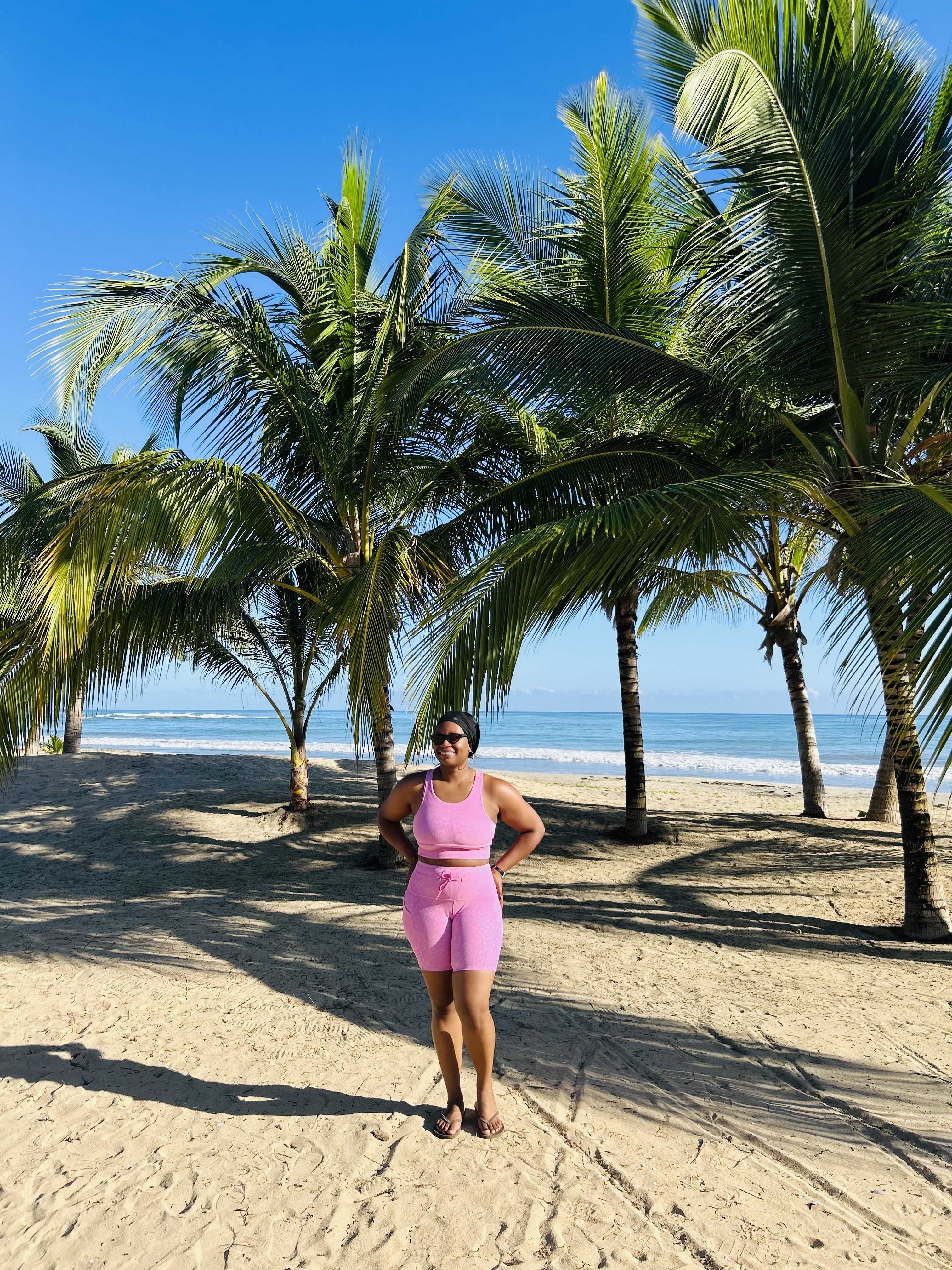 London on the balcony of her suite at Secrets Playa Esmeralda, Miches, DR
