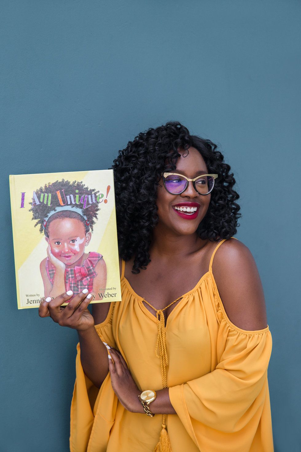 Creator of the self-love themed children's book I am Unique!, Jennifer spent the majority of her life with what she felt was a God-given flaw. Since grade school, she was insecure about her birthmark, which covers her shoulder and much of her back. Jennifer said, "I was 7 when I first realized I had a birthmark and I didn't see anyone else with one. At around 8, I started feeling self-conscious because people would ask me questions about it, thinking it was a bruise."