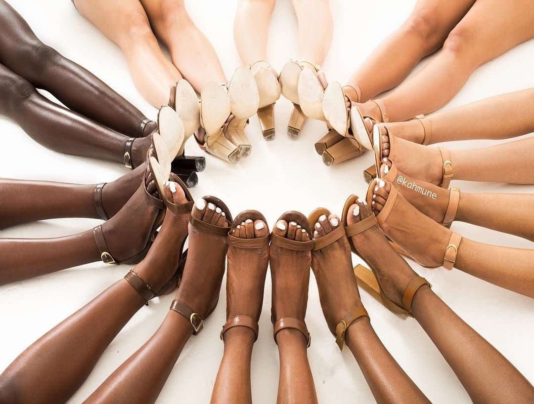 Meet Kahmune, a U.K shoe brand founded by Jamela Acheampong that has shoes that represent the entire color spectrum for WOC. The shoes retail between $200-$250 and are available in four styles: a pump, sandal, flat and a mule. The collection offers 10 different shades from fair to deep, and each shade is named after a city, such as Juba, Rio, Bogota, Goa, and Enugu.