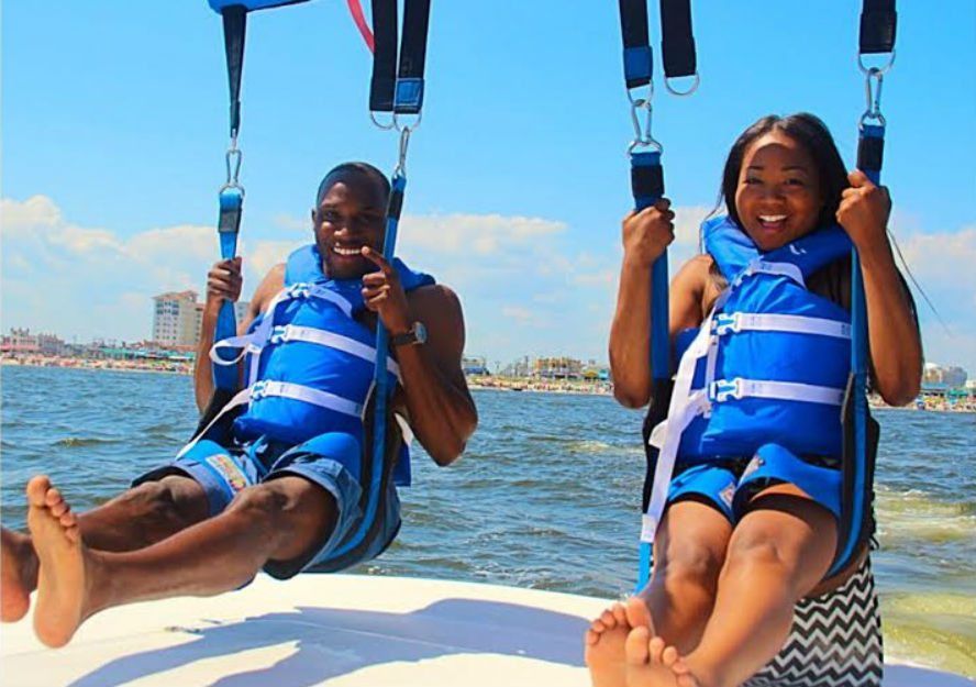 How do you celebrate your anniversaries? While something small and intimate may be the way to go for some of us, some xoCouples plan extravagant getaways overseas and others --they celebrate their relationships by taking things a step further. It was a lowkey weekend for Brianna and Lamar, a couple celebrating their two-year anniversary in Ocean City, New Jersey. The pair headed to the beach to try parasailing for the first time with three other couples and two friends. Amid the excitement of trying something new, Brianna was in for a bigger surprise when her then-boyfriend decided it was best to propose to her hundreds of feet in the air.