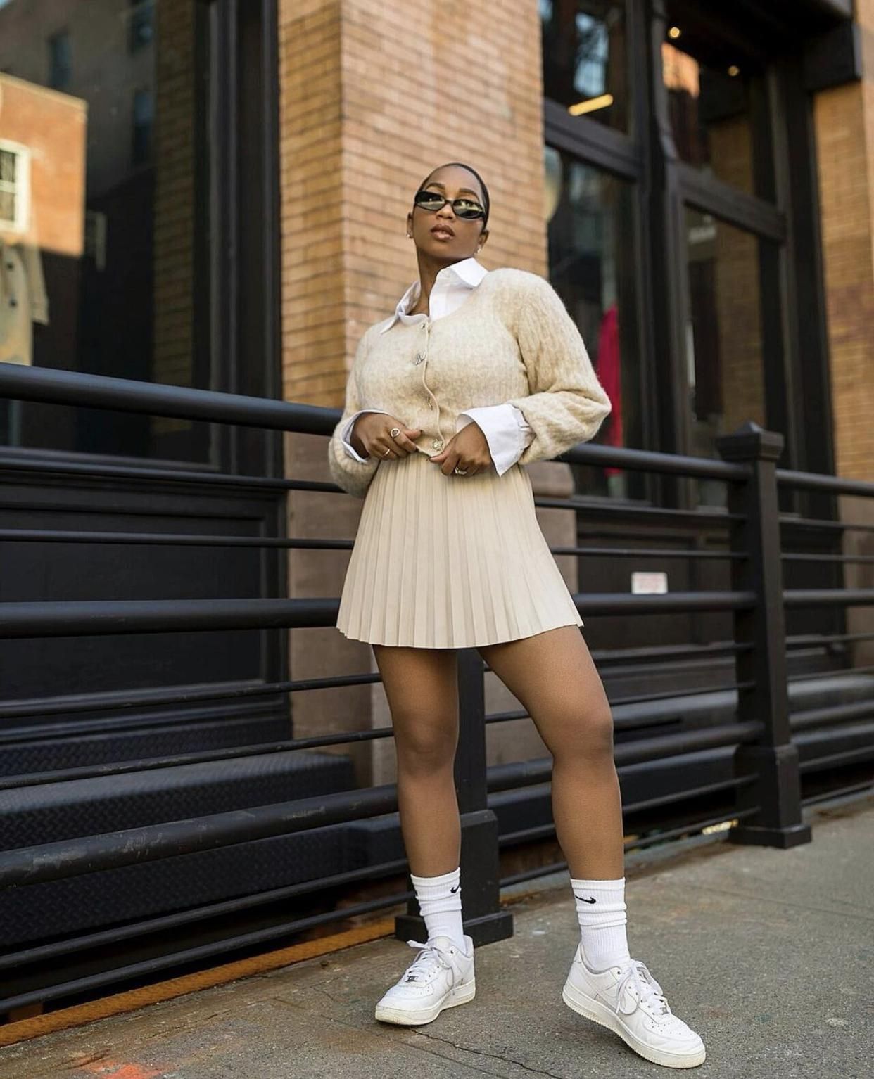 A prominent staple of classic Americana style, the tennis skirt is experiencing a vigorous comeback in 2021. Adorned only by athletic icons like Serena Williams, the tennis skirt has remained on the outskirts of mainstream fashion for decades. But with the rise of athleisure outside the home and the ongoing influence of black culture, it's quickly become the go-to skirt for sneakerheads and preppy girls alike. Since the skirt is simple and minimalist, you can expertly style it according to your exact preference.