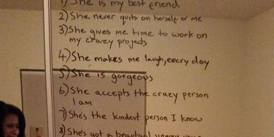 Upon returning from a trip to San Francisco, "Molly" found a note from her husband on the couple's bedroom mirror with a list of all of the reasons why he loved her. She shared: