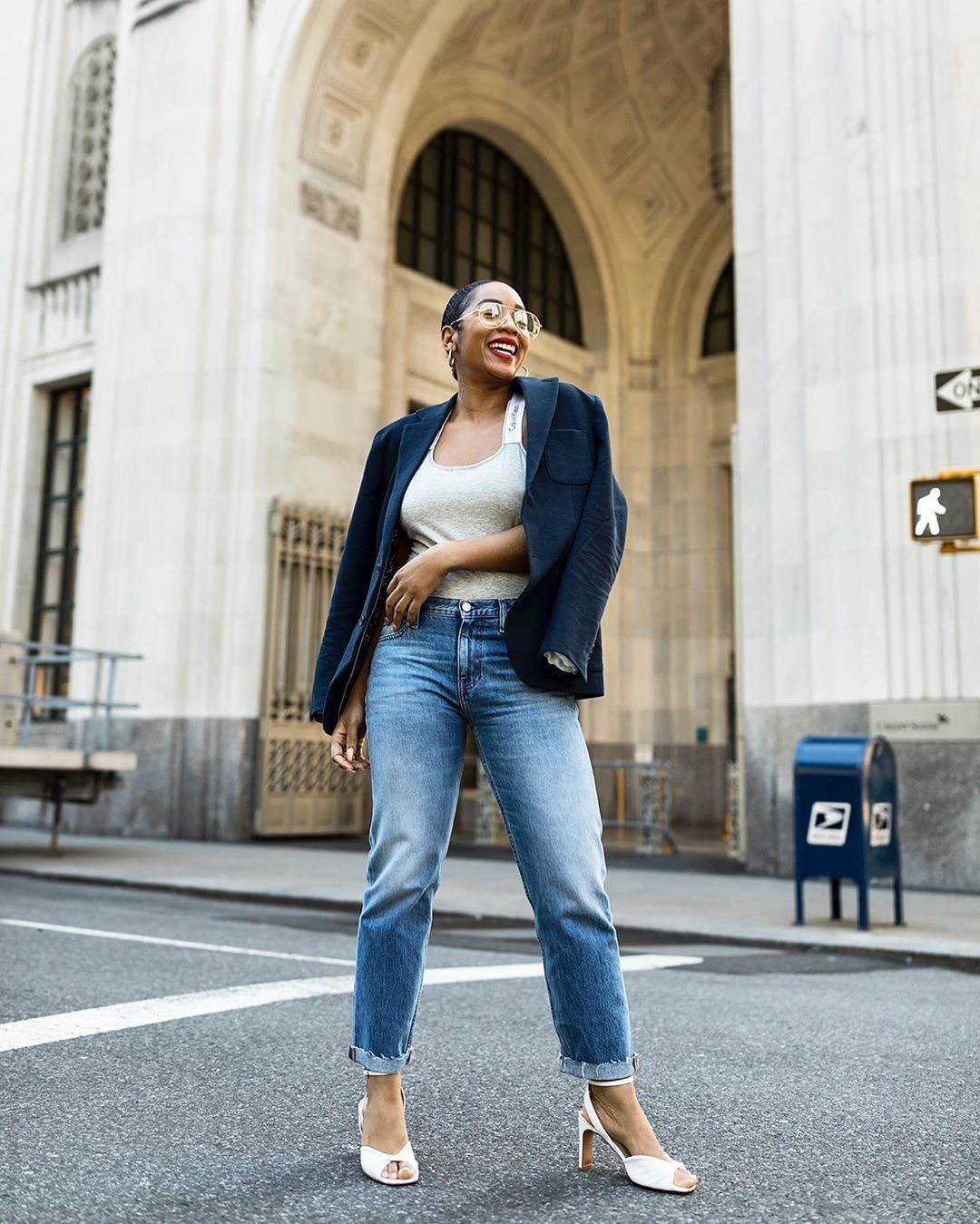 Blazers are a classic staple that every woman should have her in closet by 30. Ashley kept it simple yet chic by throwing it over her shoulder with comfy, boyfriend jeans.