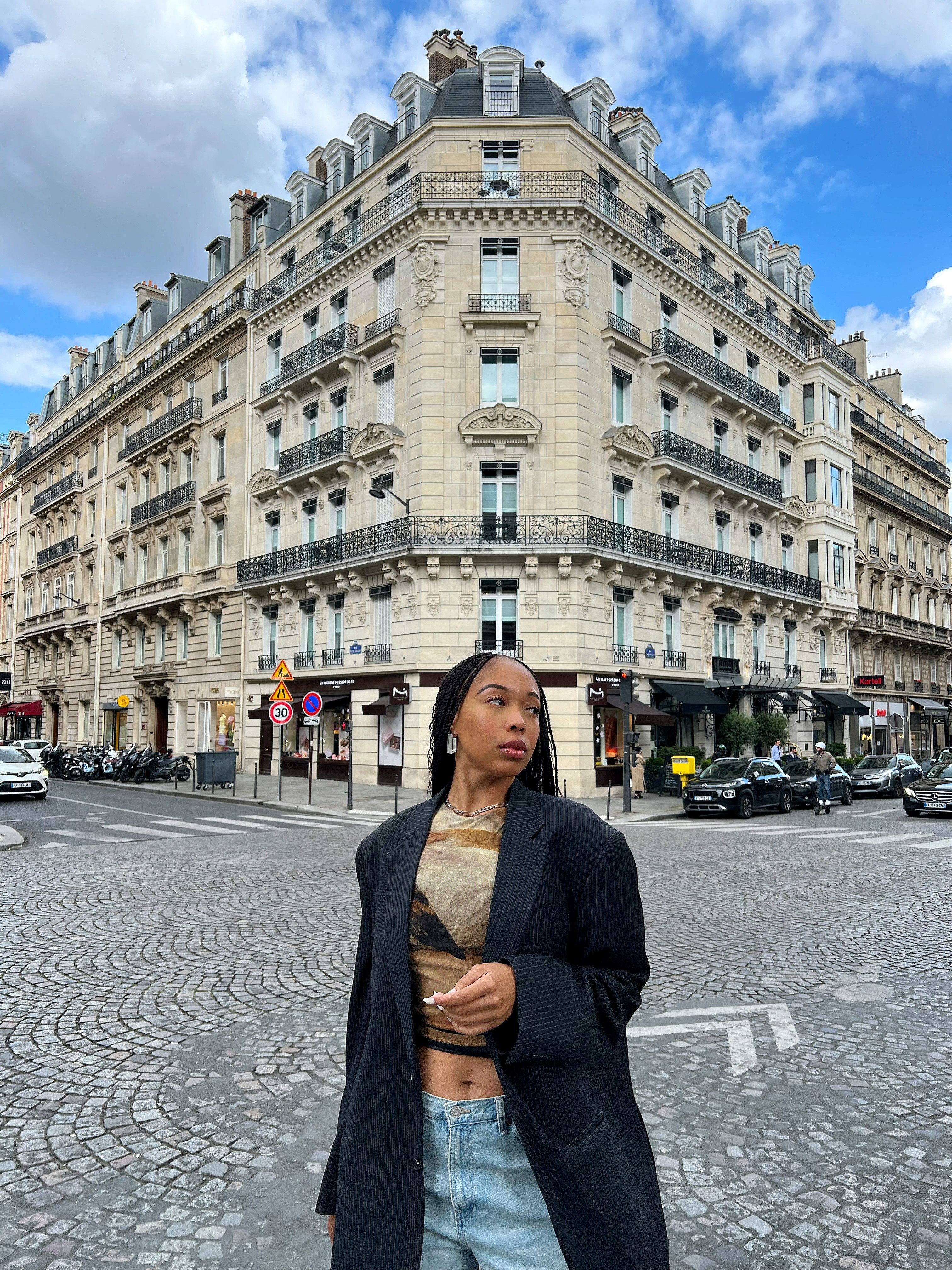 There’s an effortlessly casual nature about The City of Light with chic undertones that I instantly wanted to be a part of. On day one, I went with a pinstripe blazer paired with wide-leg distressed denim jeans and casual sneakers for a day of sightseeing. Perfect from day to night, a dark oversized blazer is a great choice for a variety of looks.