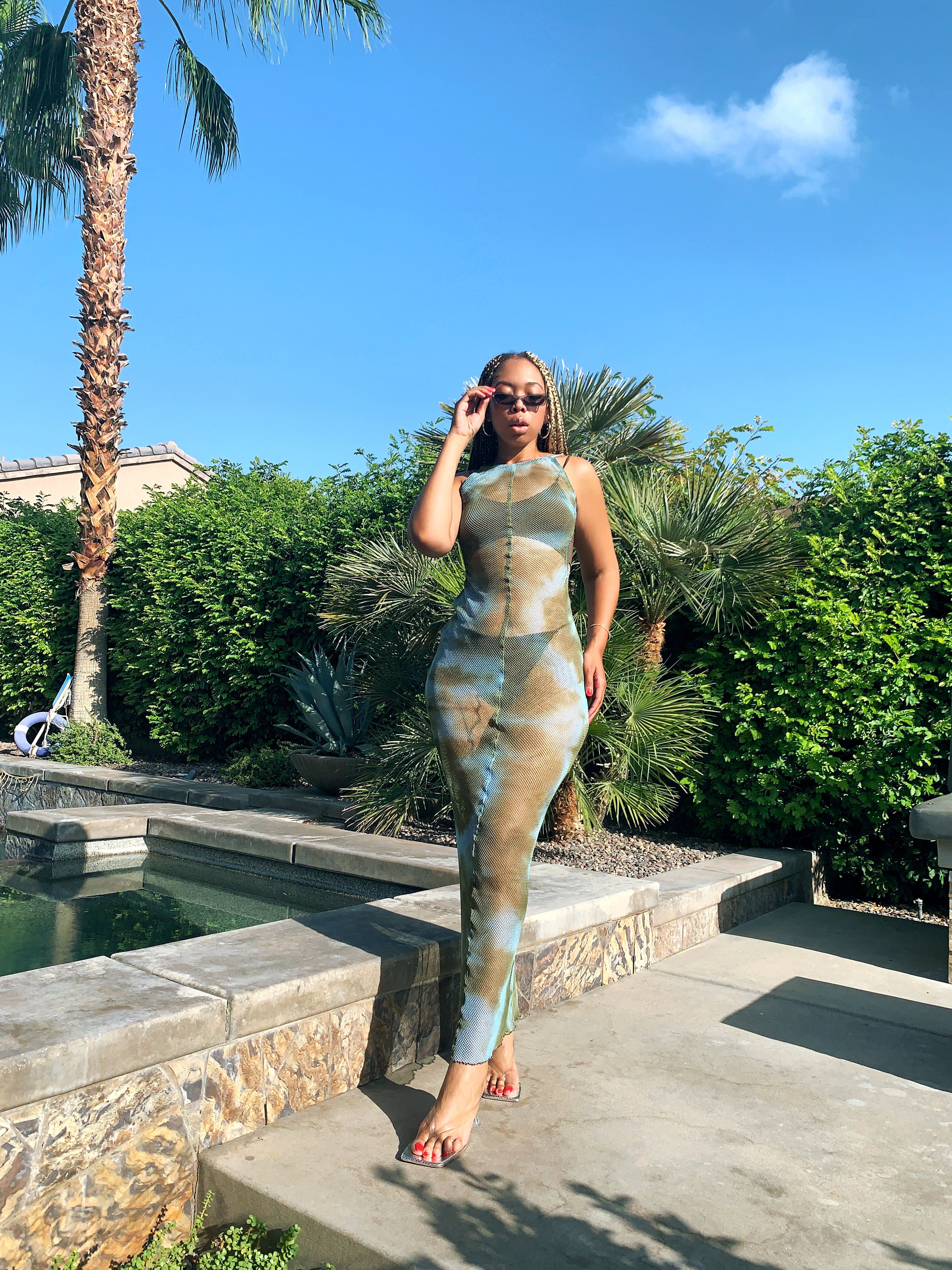 The Jesse Queen Collection offers stylish designs for tall women to dress because of their height, not in spite of it, with class and confidence. This super chic net tie-dye dress is all I've ever dreamt of in a swimwear cover-up and more. With a plunging back and perfect swirl of colors, I can attest to feeling sexy and poised when worn over my two-piece Riot Swim bikini.