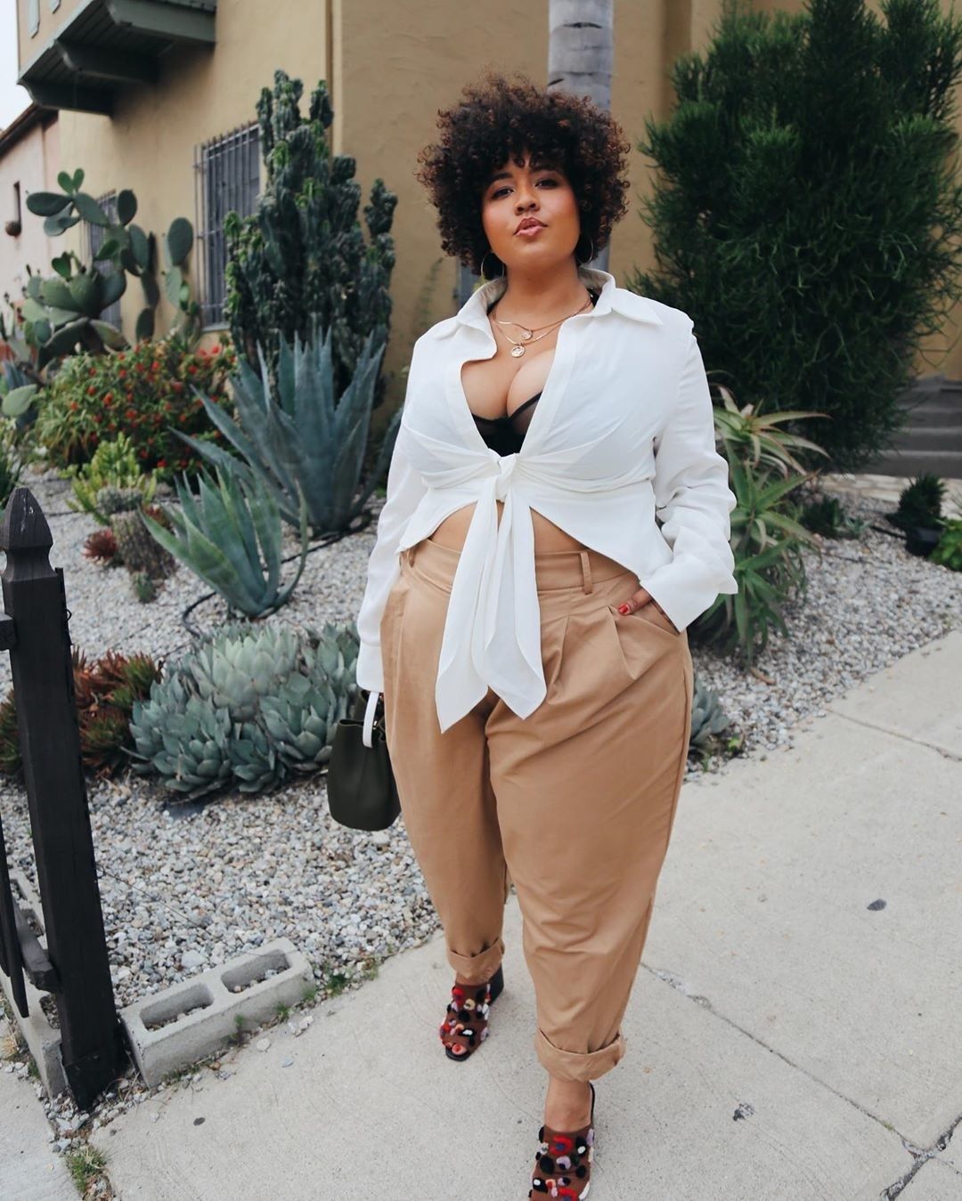 Let's take a moment to fully appreciate Gabi's shoe game and the fact that this look is utterly excellent. The fit of the top and the slackness of the bottoms provide an ideal balance. I can't get enough of the stacked necklaces as well.