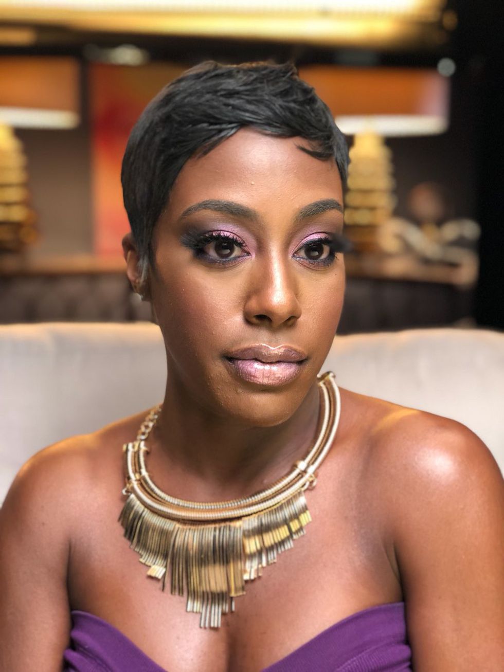 She's had some hot and heavy dances with love on the show –– particularly with a tall, chocolate entrepreneurial brother named Alexx –– and she brings spunk and sassiness in personality, demeanor, and style. She rocks a super-cute, spikey 'do that's The Cut Life-worthy, embellished stiletto nails in bold colors, and a honest, tell-it-like-it is candor. On a recent date with Alexx, a trucking company owner who was the last man in the house left with two women to choose from, she said, "I know you noticed that I don't kiss. I'm just the type of woman where I feel I shouldn't rush anything. When I feel the bag is secure –– when my man is my man –– that's when I'm open to that."