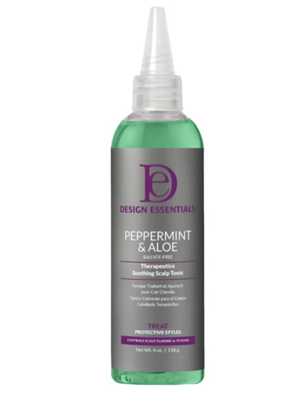 Revitalize your hair with Design Essentials® Peppermint & Aloe Soothing Scalp Tonic. This refreshing tonic clarifies and purifies the scalp, eliminating dirt and excess oils that cause irritation. Infused with natural peppermint and aloe, it calms, soothes, and stimulates the scalp, providing instant relief from itching.