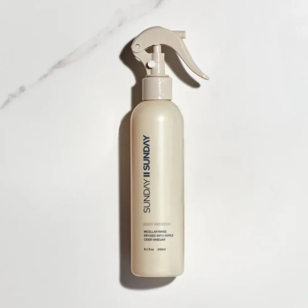 Sunday II Sunday’s dry shampoo alternative utilizes the cleansing power of apple cider vinegar and micellar water to refresh your hair and scalp. Enjoy hair that appears, feels, and smells rejuvenated between washes.