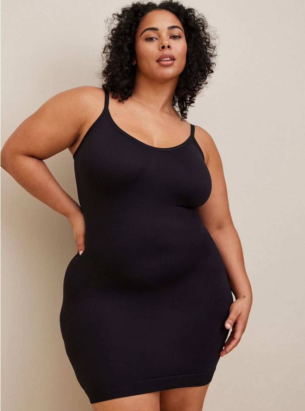 Torrid’s Seamless 360 Smoothing Slip Dress is the perfect smoothing shapewear. If you have an hourglass-shaped body, it is perfect for you. Hourglass shapes should use the light to medium compression option in their shapewear. I’ve worn this slip over other girdles to have a smooth effect and the tummy control I needed. It conforms to my body under my dresses and doesn’t ride up, which is a plus.