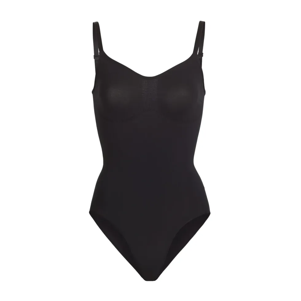 This bodysuit has a stronghold in the core, while it shapes and it lifts our butts. It also provides support for your chest. I love this shaper because it also has one in a thong version and many colors. A popular Amazon dupe is going around TikTok, but the material ripped from my long nails, unlike the SKIMS one. Also, it doesn’t suck my stomach in like this one. The Sculpting Bodysuit is perfect for rectangle-shaped, apple-shaped, and diamond-shaped bodies.