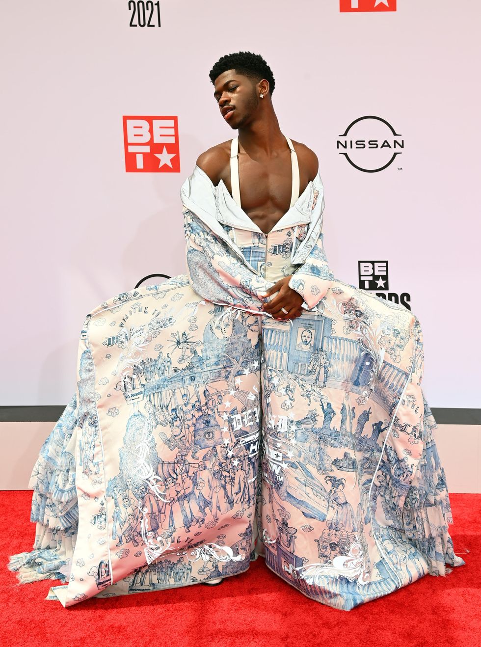 "MONTERO" singer, Lil Nas X, glided down the red carpet in a beautifully structured gown. He is living his Cinderella dream and we are so honored that we get to experience his light.