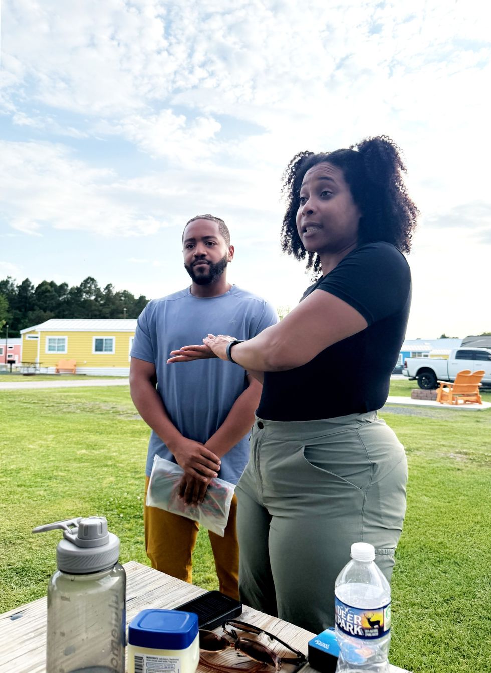 I also learned how to pitch a tent from scratch (via a completion where my teammate and I won a bottle of sparkling wine), how to start a fire from scratch (a lesson led by Kameron), and the best ways to find a good hiking trail in your community (Kameron and Chev walked us through Kiptopeke State Park, where there are opportunities for bird watching, kayaking, yurt camping, fishing and swimming at the beach.)