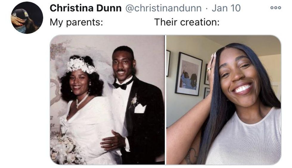 Viral commodities are a dime a dozen in this sphere, with one of the latest capturing our hearts in the process. In, walks "My Parents, Their Creation", a social media trend where people show big love to their parents, while showing off a pic of themselves for resemblance comparison. This trend shows recognition to nostalgic black love that created who we are.