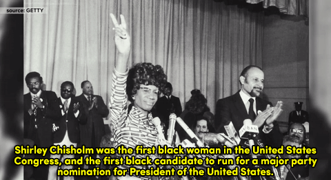 "Unbought and unbossed" was the mantra Shirley Chisholm made famous, and her run for the U.S. presidency in 1972 made her the first woman and African-American to seek the nomination from a major political party. Before that, she was a pioneer in her role as the first African-American woman in Congress in 1968 (again, it took that long?) and held that seat for 14 years, introducing more than 50 pieces of legislation and advocating for racial and gender equality. Though she did not win the nomination for the Democratic Party's presidential candidate in '72, her journey opened doors for taking the possibility of a woman on a major ticket seriously. She'd later teach at Mount Holyoke College, co-found the National Political Congress of Black Women, and be offered the role of U.S. Ambassador to Jamaica.