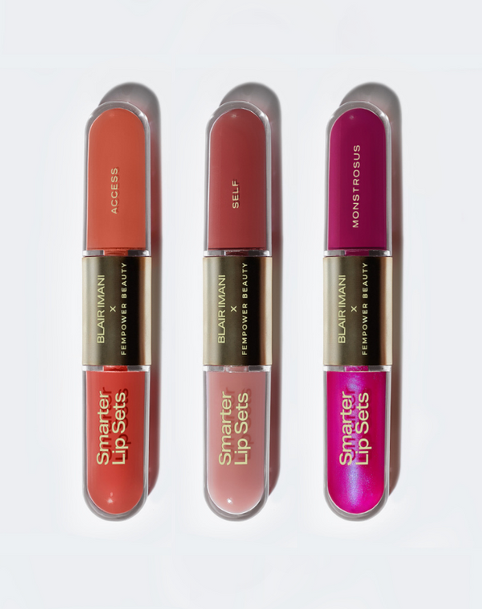 The Blair Imani x Fempower Beauty Smarter Lip Sets launched early last month and is a collection of matte/dewy lip color duos that include bold shades, nude shades, as well as shades paired with affirmations of mirror decals. Her favorites from the collection? “For a basic [shade], it’s 'Self,' and for a statement, it’s 'Ubuntu.' But my must-have is 'Ujamaa' which is our bold scarlet red with a message about resource sharing and cooperative economics.”