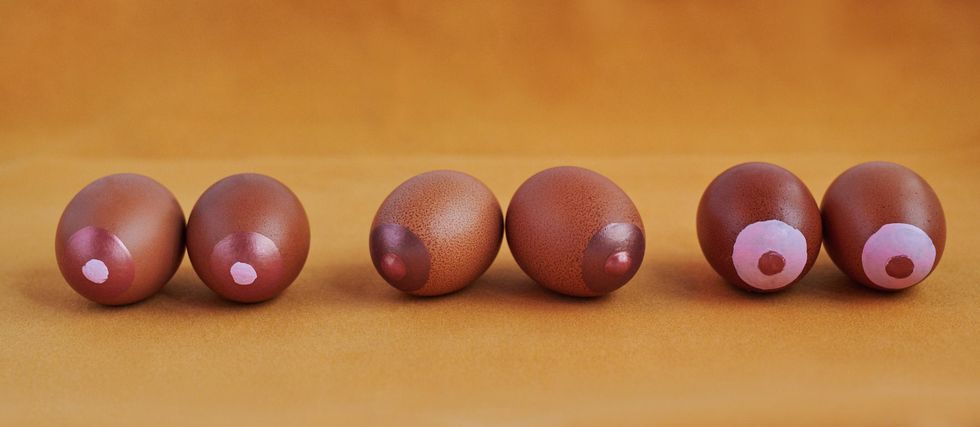 Never bite someone’s nipple without consent. Nipples are sensitive AF and everyone doesn’t think pain is pleasure. You do not want to interrupt a good time by doing that. Before nibbling or pulling on her nipple, ask, “Do you want more?” or “Harder?”