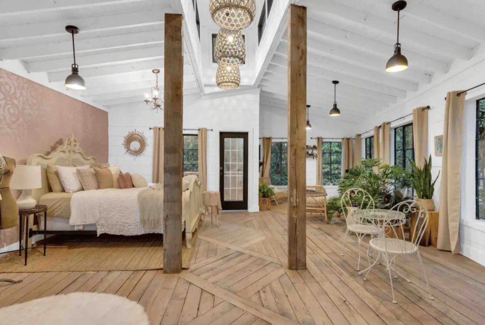 This listing gives new meaning to rustic living, and you might even forget you're actually staying inside a barn. There's a hot tub and fire pit, and the hosts even offer chef services by request.