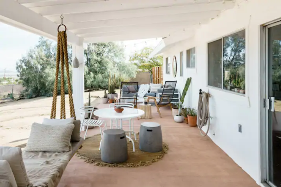 Three good signs of a great experience: It's managed by a superhost, has almost a perfect 5-star rating, and has multiple detailed, positive reviews. This desert retreat embodies bohemian minimalist chic and has 2 full bathrooms. Take a trip to Joshua Tree National Park for sightseeing or hiking, or simply enjoy the peace of a sunset right at home.