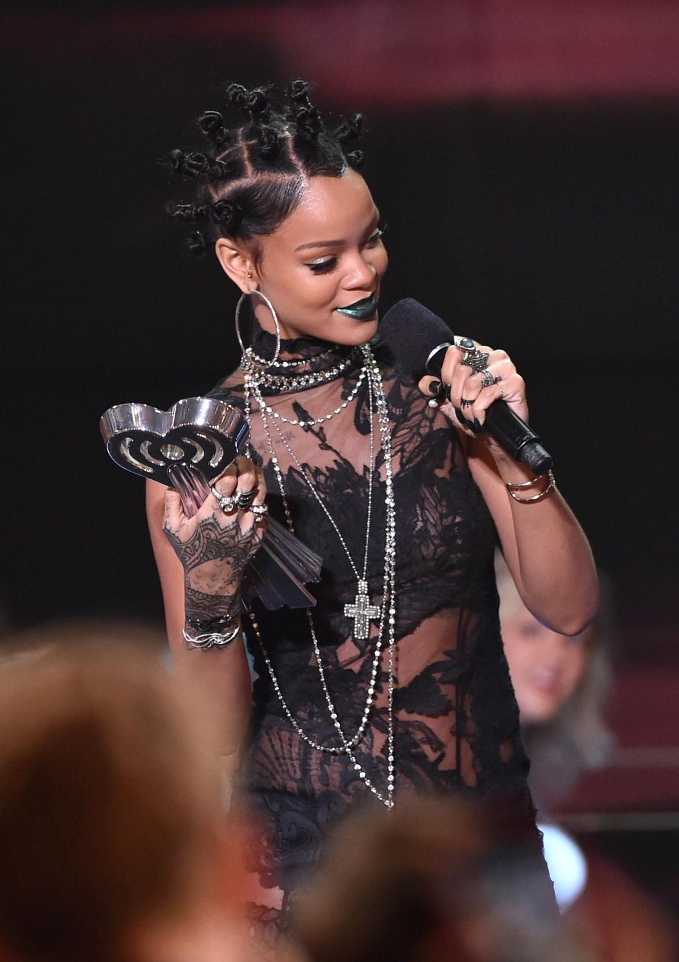Of course, Robyn Rihanna Fenty rocked tf out of her knots (which she has done, publicly, on more than one occasion). This bold look was from the 2014 iHeartRadio Music Awards.