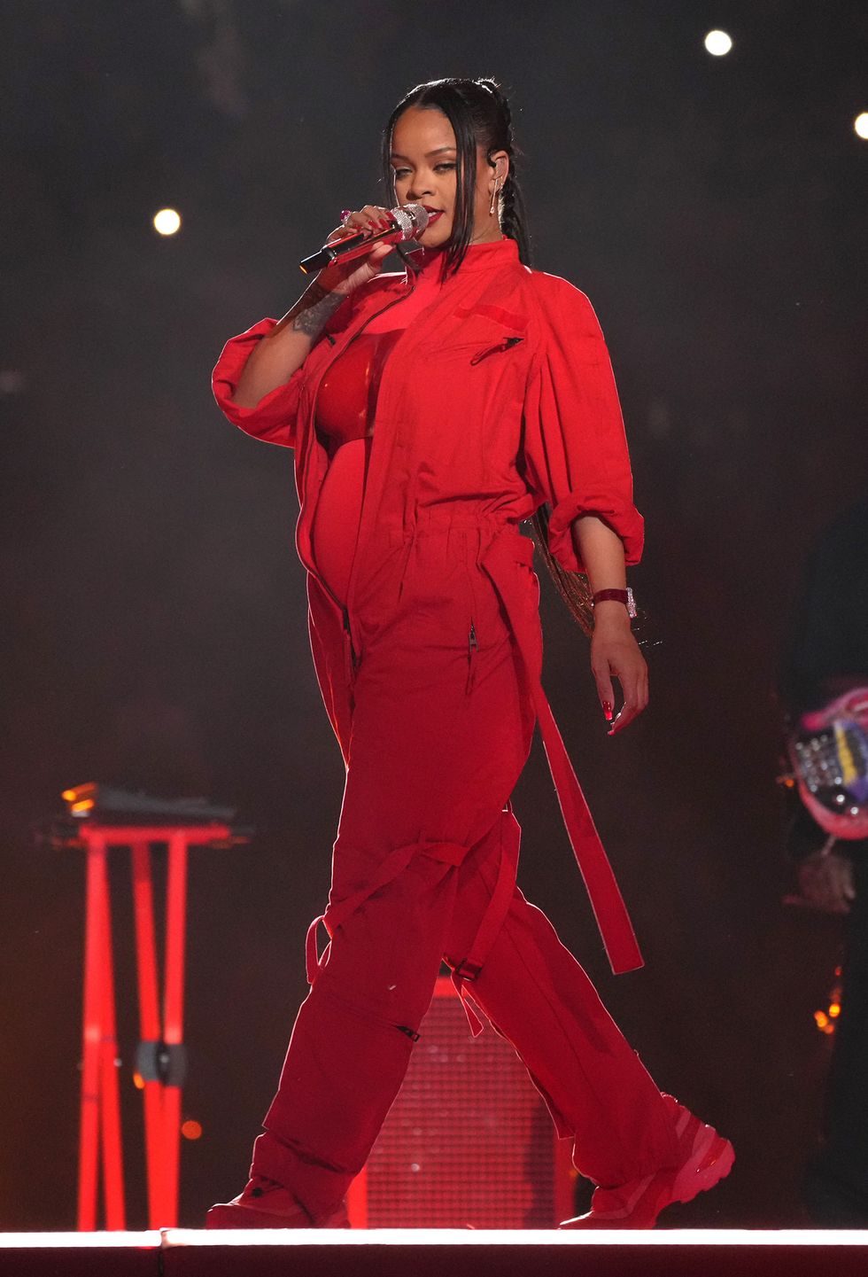 We'd be remiss to not mention the woman who made the Super Bowl the center stage for her announcement of baby #2. In the past, celebrities have made pregnancy announcements in some big ways, but billionaire Rihanna turned that up a notch with this past Sunday's halftime performance news. In a recent interview with Zane Lowe, Rihanna's longtime beau A$AP Rocky shared that fatherhood felt like coming home "to heaven every day," adding, "I’m so thankful. God is good, man."