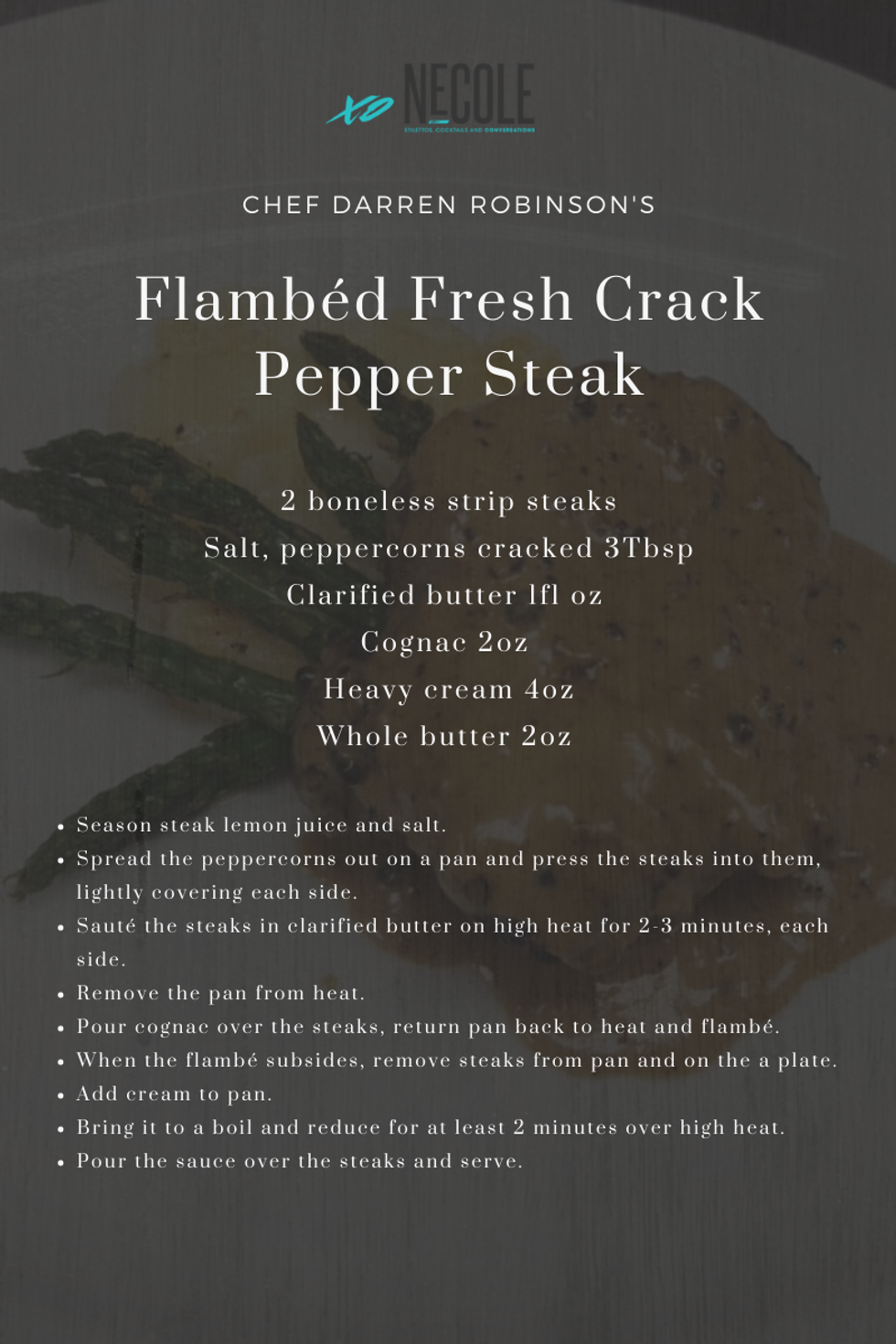 Chef Darren Robinson | Flambéd Fresh Crack Pepper Steak