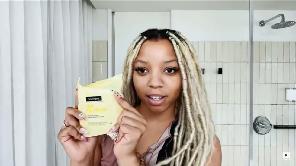 Although her face was already clean she used Neutrogena's Skin Balancing Micellar Cleansing Cloths to remove any unseen residue.