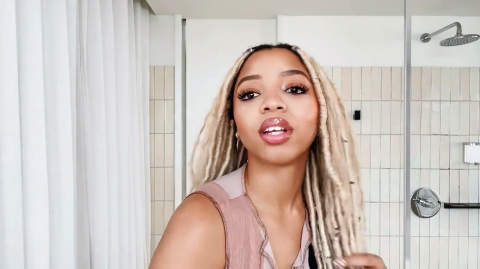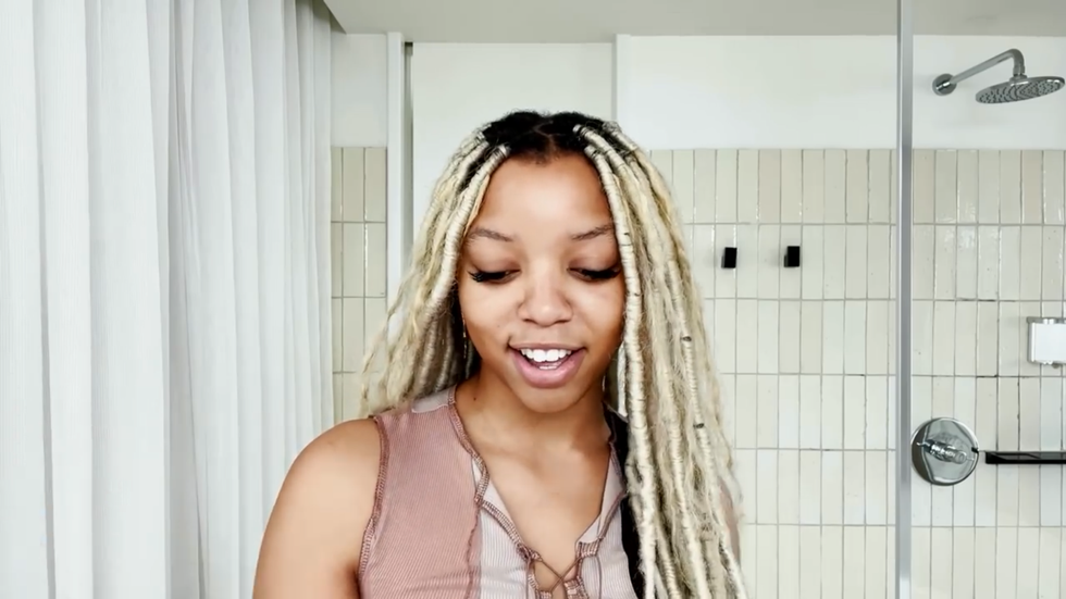 It's been a little over two weeks since Chloe Bailey, aka Chlöe, snatched our wigs and released her debut solo single, "Have Mercy." From the music and visuals, to the way she and her sister Halle support each other, we can't get enough. And this week, our good sis taught us a couple more things when she appeared on Vogue's Beauty Secrets . There, she gave us all the details to what she calls "Glowy Chlöe," her on-the-go everyday skincare and makeup look.