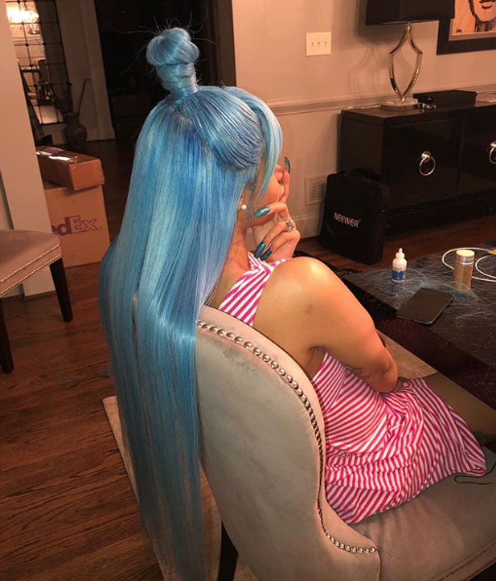 "I wear my Mink Brazilian hair. That's the only hair I really wear out of my company [Hym Hair]. It's very expensive but it lasts a super long time. You can wear it for a year straight and it'll still look like you just got it. That's the only hair I wear. I've tried Indian hair, nothing really wrong with it, it's just the Mink Brazilian hair is less maintenance. If I press it out, I can sleep all on it, and then run a brush through it and it'll still be straight [for] two full weeks."