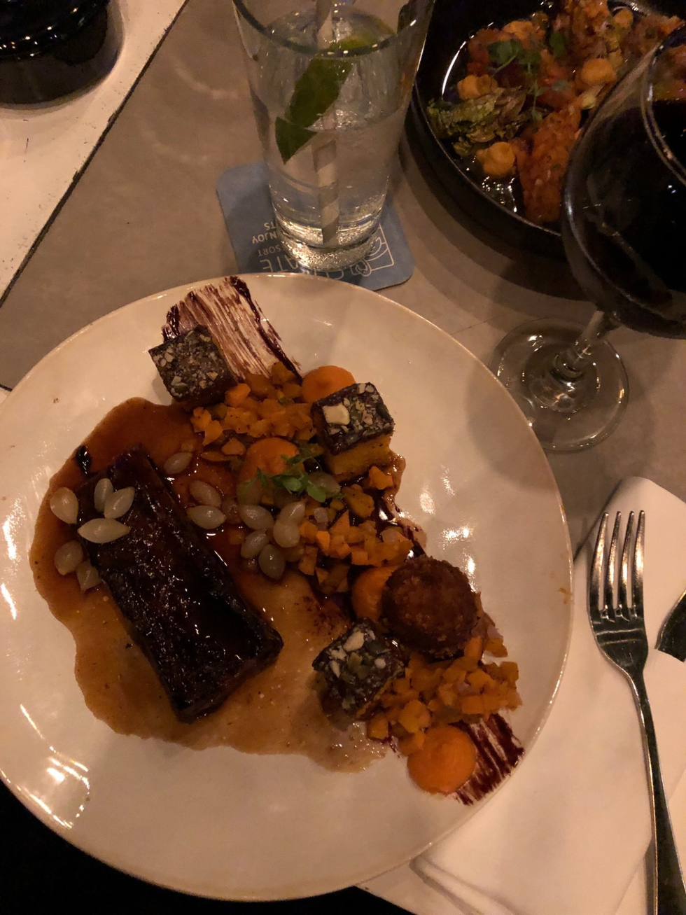 Notably, Karakter is a restaurant known for being located in quiet and unique locations and chose Curaçao to be the home of their second restaurant. With the white sand and the blue sea and a special appearance of the sunset acting as our backdrop, we enjoyed the most decadent meal at this chic restaurant. There was careful care and consideration placed on incorporating the flavors the chef wished to highlight, like cauliflower, pumpkin, and dark chocolate, which went together seamlessly with some of the other elements of the dishes. Altogether, the elements provided a sensory experience to remember.