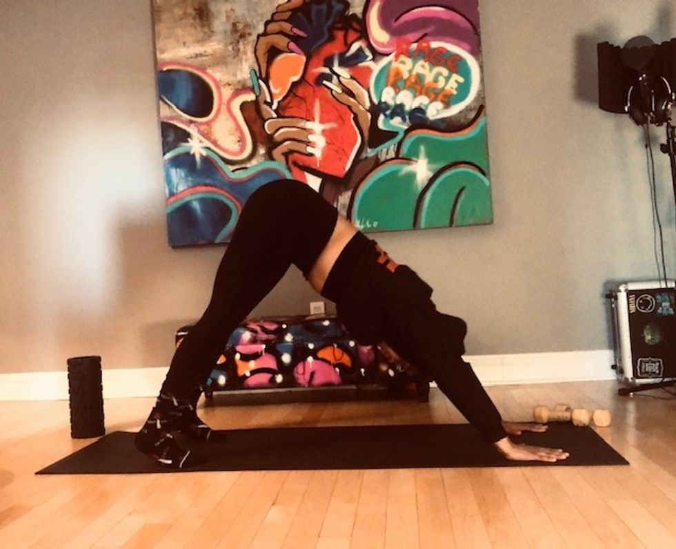 When it comes to her daily fitness routine, Coco is typically accustomed to going to an actual gym and being in the presence of others, but due to social distancing, she's practicing self-discipline to the max in her own living quarters. She starts her day with yoga and bodyweight exercises with the help of Fade2Fit to start the day off strong. #ShamelessPlug, am I right?