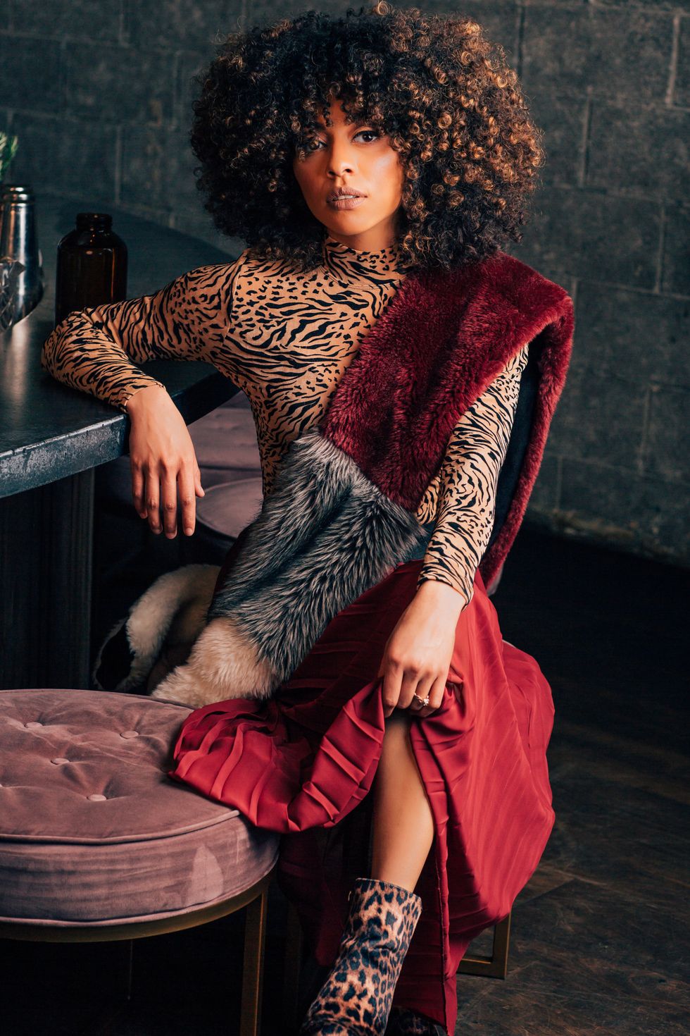 For women like me who enjoy feeling bad and bougie on a budget, this look is perfect. The best part about this look is, it's flexible and low-maintenance but still looks expensive and elegant. You can achieve this look by mixing any animal print with the faux fur accessory of your choice. Set your look off by adding the maxi skirt of your choice and you've just created the frugal outfit find of your dreams. Felicia shared: