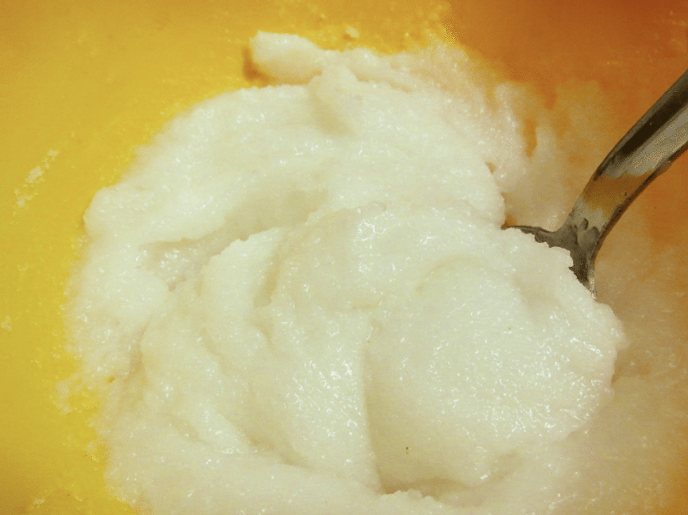 In my mix, I used both coconut oil (2/3) and grapeseed oil (1/3). I also squeezed ½ of a small lemon into my mixing bowl. Fresh lemon juice, when diluted, has great benefits for the skin such as brightening/evening skin tone and extra exfoliation. To be on the safe side, use the scrub at night time only if you decide to add lemon; exposure to the sun with lemon juice on the skin may cause burning.