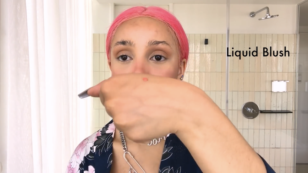 "Put an oil on top of your moisturizer and [it] holds it down all day. It's going to make you look sweaty, but that's okay. The oil mixes with your foundation and it makes it look a lot more natural."