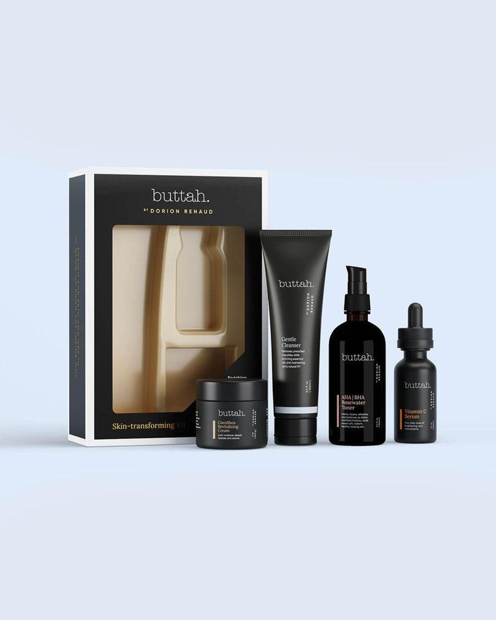 Soon after, everybody started asking what I was doing, and it was really just a gentle cleanser, a vitamin C serum, and the shea butter from Harlem. When I learned that there were so many people who were embarrassed to ask–especially men–what I was doing for my skin, I realized that skincare in our community wasn’t something that we were educated on properly. We were somewhat ashamed to ask for help in that area. So I wanted to create a line that was easy and efficient and that people could feel proud of. And at the top of 2018, the idea for Buttah came to me, with it launching later that year.
