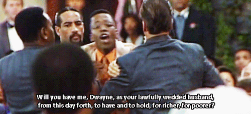 Feeling as if he is missing something, he makes the decision to entertain another woman hours before his engagement party. Whitley, feeling hurt and betrayed by Dwayne calls off the engagement. When you think about it, Dwayne is the definition of the "nice guy/nerd" who just wants to be your friend but he really is just silently waiting for the right vulnerable moment to make his move.