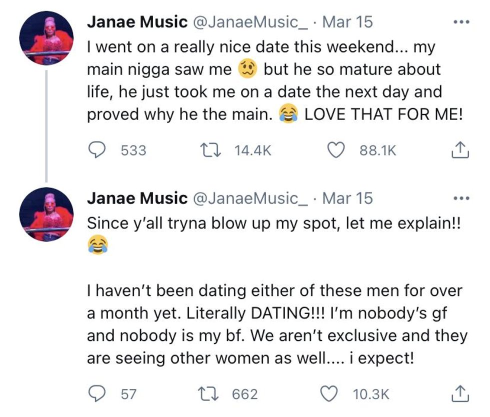 And once everyone began reacting, she defended her situation by saying that she's not exclusive with either and that she's only been dating them for a short period of time. Soooooo, basically, sis said she can do what she wants!