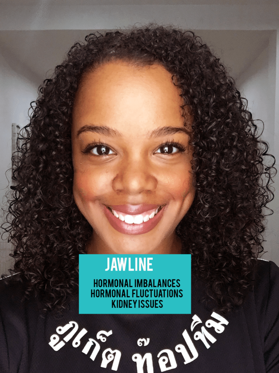 Raise your hand if you can tell when your period is about to start because you experience a breakout. Is it around for your jawline? According to face mapping, jawline breakouts are due to hormonal imbalances, hormonal fluctuations, and kidney issues. There is even a theory that breakouts along your jawline can also tell you when you are ovulating, and on which side you are ovulating. This hasn't been proven, but I still think it's pretty amazing.