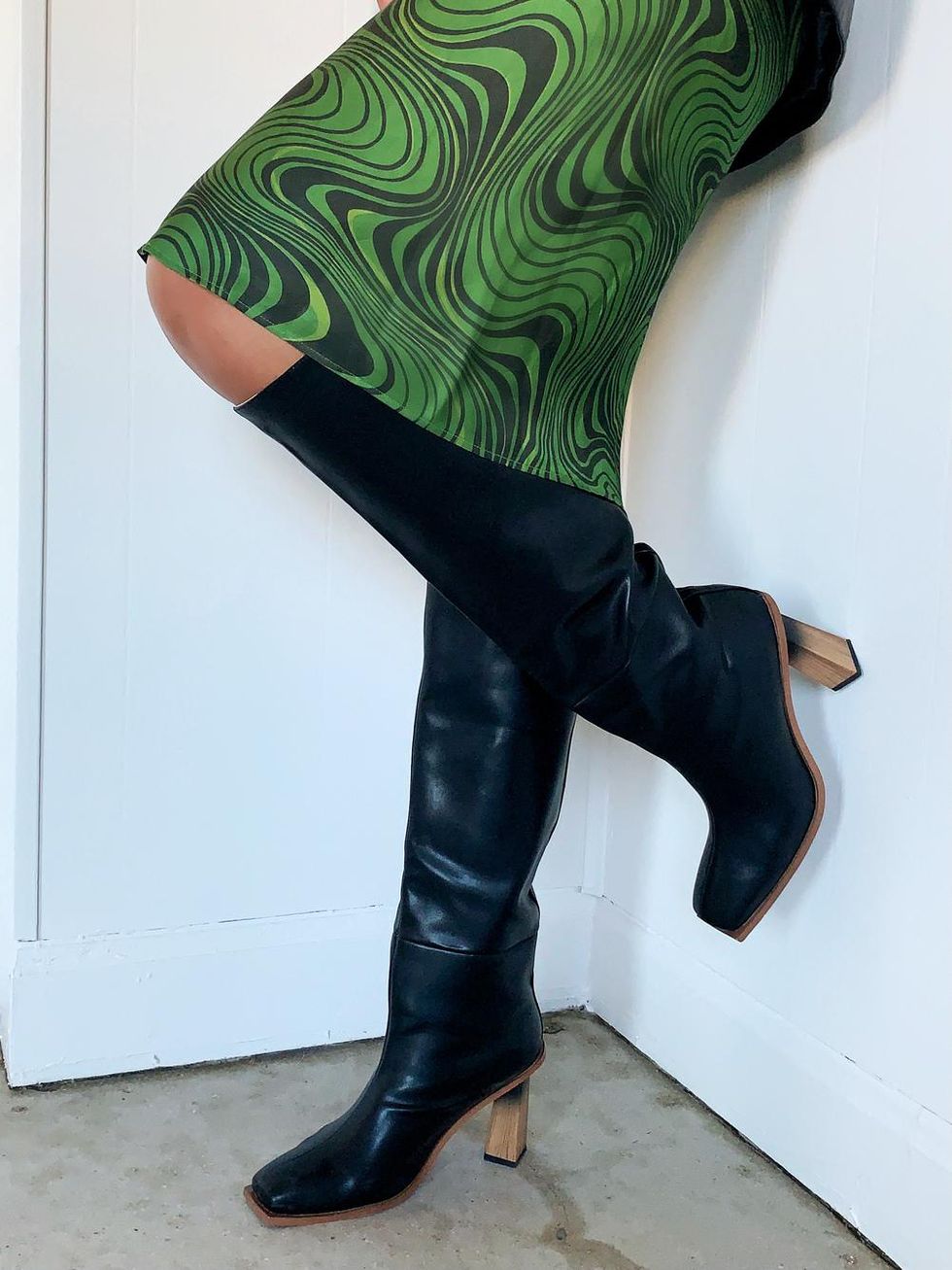 During this time, I'm gravitating toward more mini and maxi skirts, dresses, and even leather shorts as I prance into a range of summer to fall-like temperatures that vary from day to day in LA. What I love most about the calf boot is the range of looks you can complete with limitless options of colors and prints for every preference.