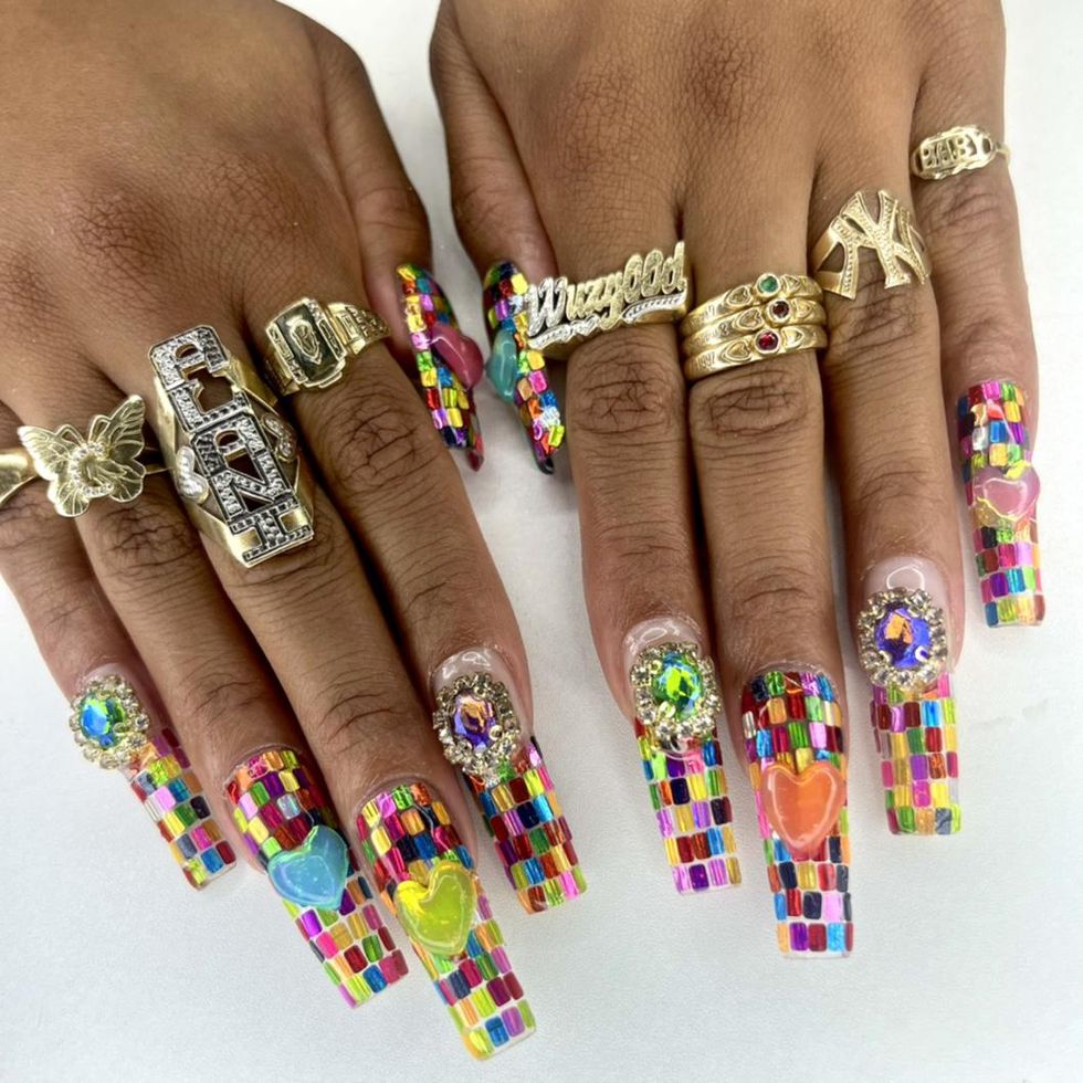 “The thing I love most about being a nail artist is getting to create every day. Whether a client provides inspiration or not, I design nails for them, inspired by them,” Melissa tells xoNecole. “Each set is unique and different, one of one. I'm fortunate to have an eclectic group of clients that allow me to push the envelope daily, it's my passion and I love it!”
