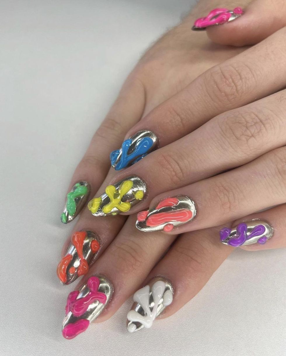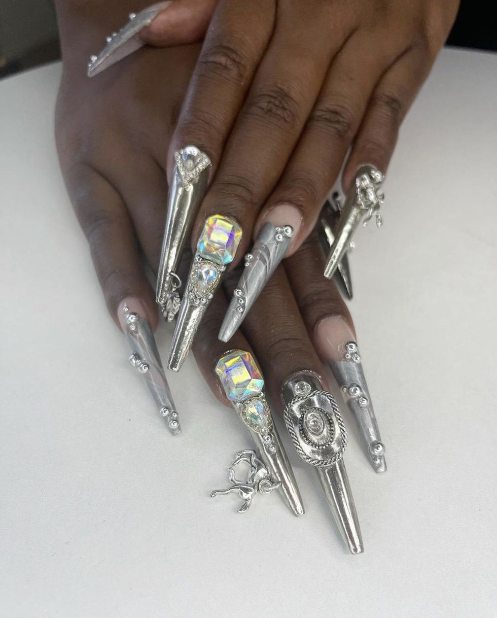 “Metallic nails will definitely be trending for fall, fashion is having a futuristic wave. Think Balenciaga and Schiaparelli, silver and gold finishes.”