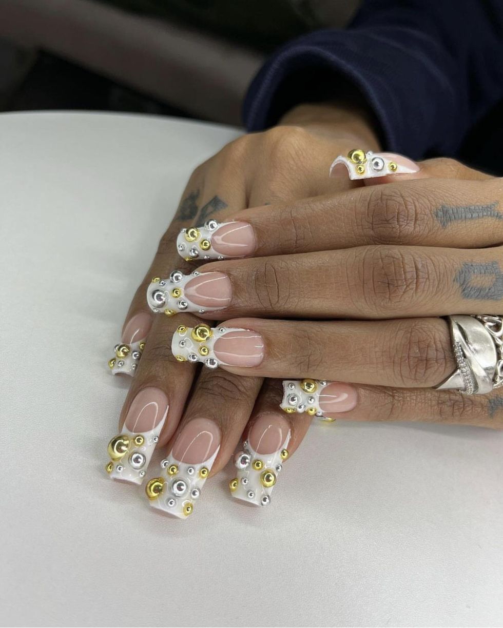 “Gems and jewels make great accent nails, and adornments with prints really pop," Melissa says. "They can be bigger if you're flashy or smaller for a more elegant look.”